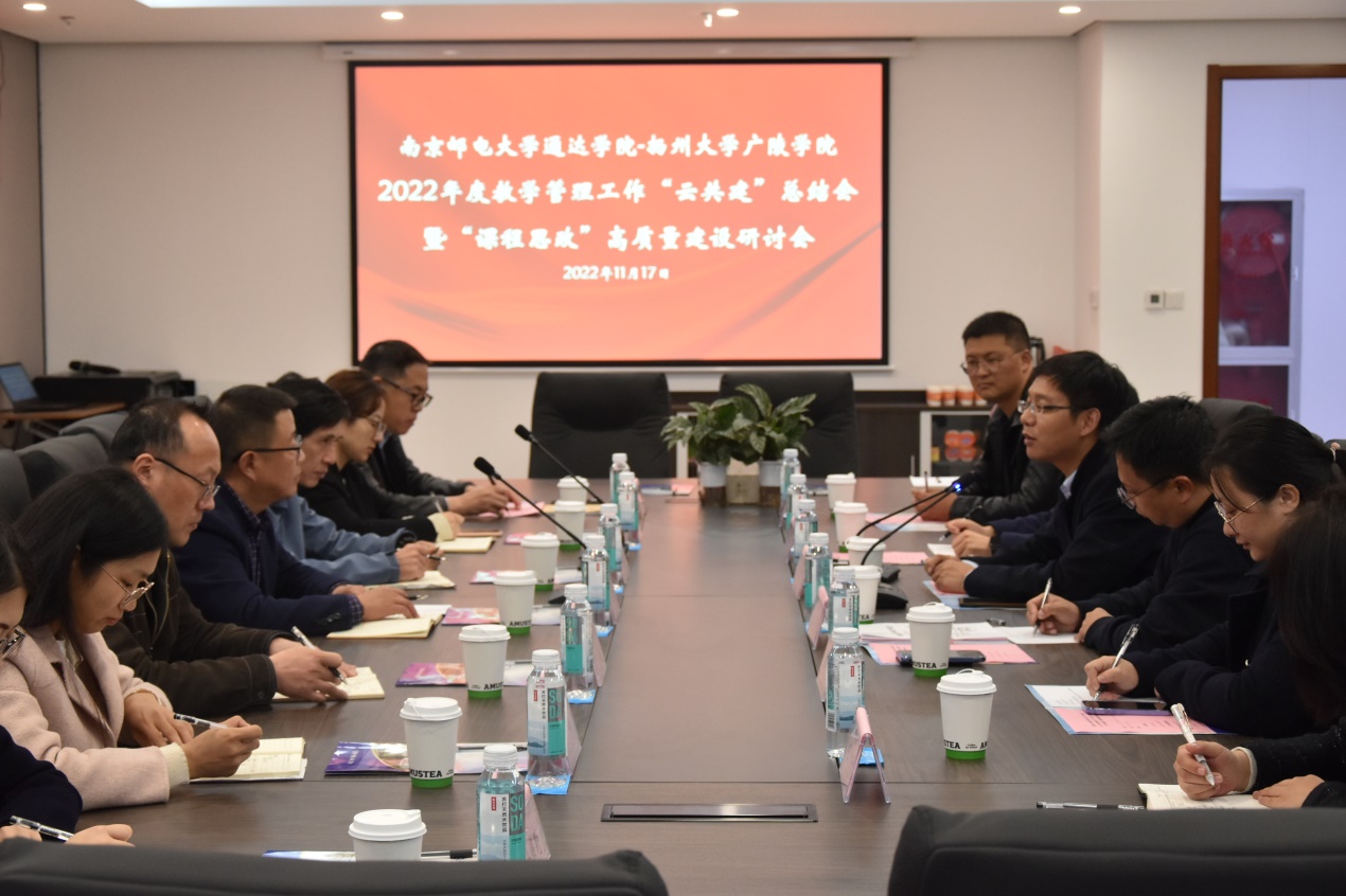 11月17日下午,扬州大学广陵学院教务处于涛处长一行来德赢官网开展2022年度教学管理工作“云共建”总结暨“课程思政”高质量建设研讨活动,教务处、创新创业学院科职以上干部参加会议,刘允副院长出席并主持会议。