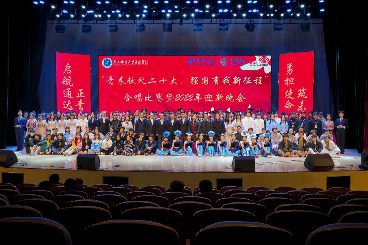 12月8日晚,以“青春献礼二十大,强国有我新征程”为主题的合唱比赛暨2022年迎新晚会在大学生活动中心礼堂举办。本次活动由团委主办,工会、二级学院分团委、学生会、大艺团、通达之声、新媒体、青协、戎光大队共同承办,中国电信扬州分公司、中国移动扬州分公司以及中国联通扬州分公司共同协办。学院领导,学院各部门、各单位负责人,辅导员老师以及2022级新生共1200余人在现场观看了晚会,本次活动设置实验楼报告厅和行政楼报告厅两个分会场,其他学生通过线上直播形式进行了观看。
