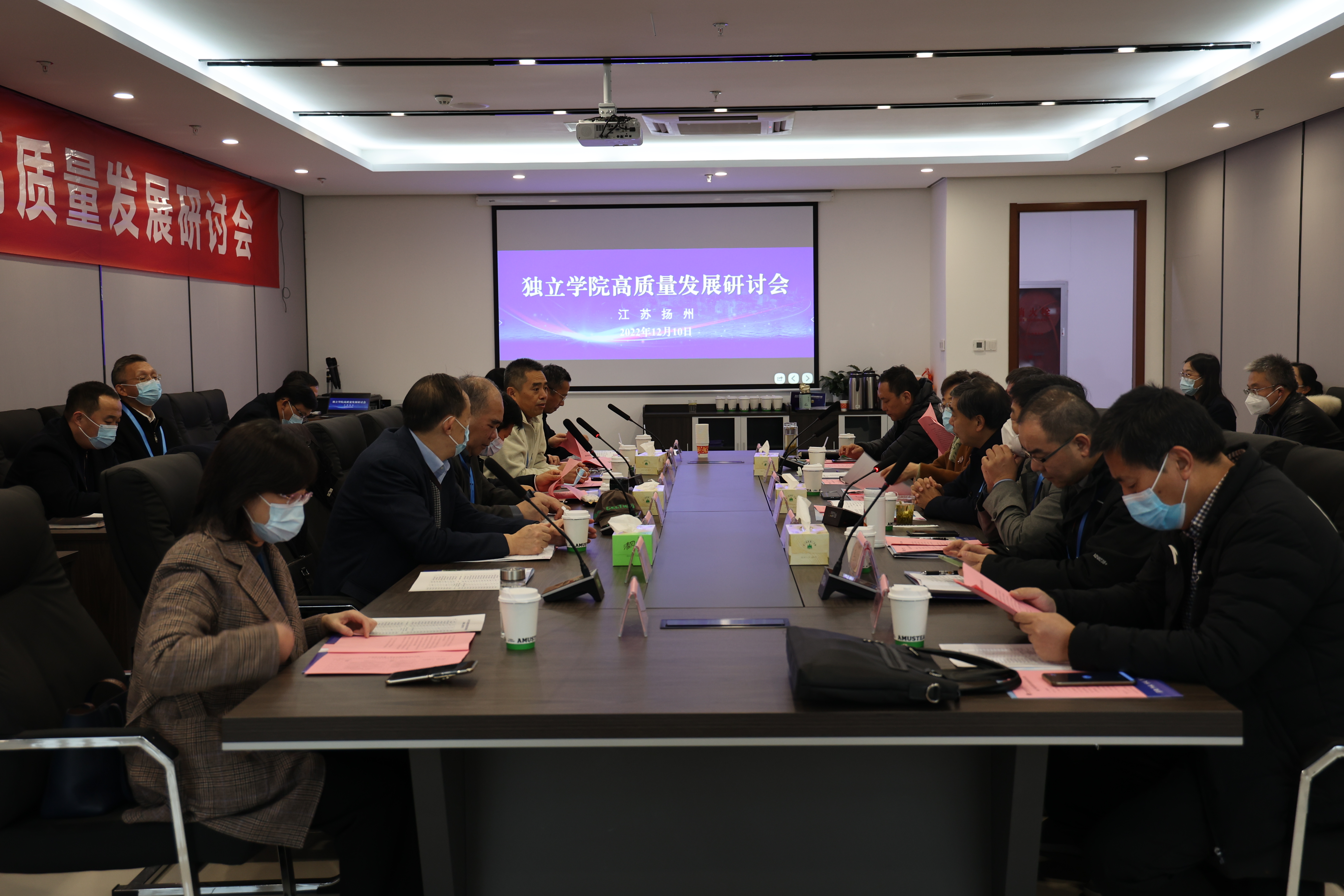 相约历史文化名城扬州,相聚千年运河河畔。为进一步加强江苏独立学院之间的交流和合作,研讨新形势下独立学院发展中的实际问题,推动和促进独立学院高质量发展,12月10日上午,由德赢官网承办的江苏省独立学院高质量发展研讨会在学院成功召开。来自全省14所独立学院的院长和嘉宾克服疫情带来的困难,参加了此次会议。本次研讨会的主题是“学习贯彻党的二十大精神,深化内涵建设,推进独立学院高质量发展”。