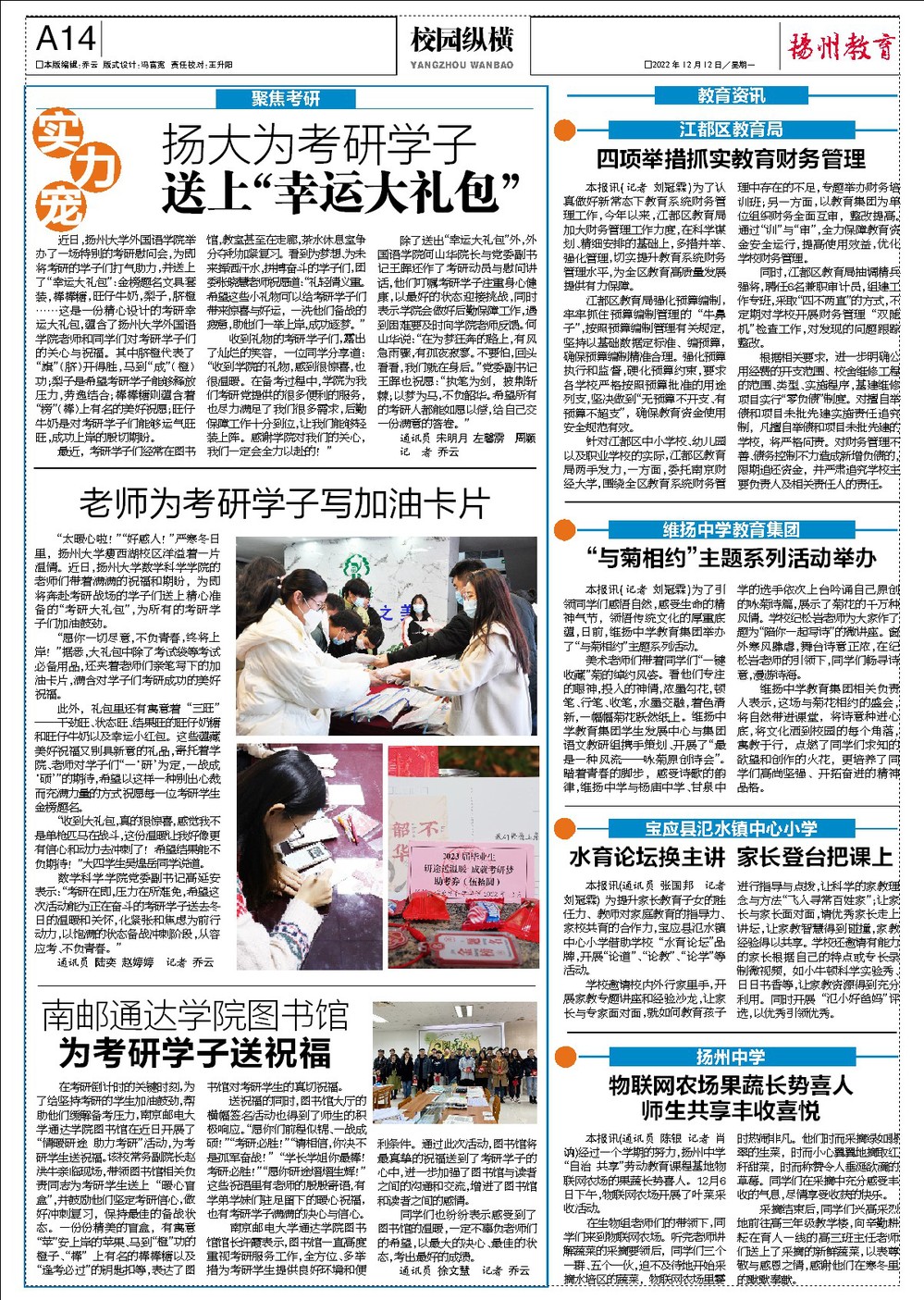 “扬州教育”南邮通达学院图书馆为考研学子送祝福