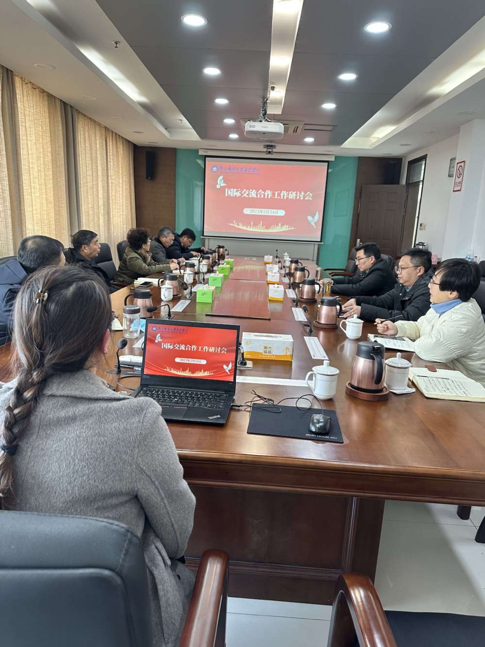2月24日下午,德赢官网在行政楼十楼会议室召开了国际交流合作工作研讨会。院长王国平,党委书记朱清,常务副院长赵洪牛,副院长刘允,纪委书记张建波,党委副书记、副院长王楷以及招生就业处、学生工作处、教务处等相关部门负责人参加了研讨会。