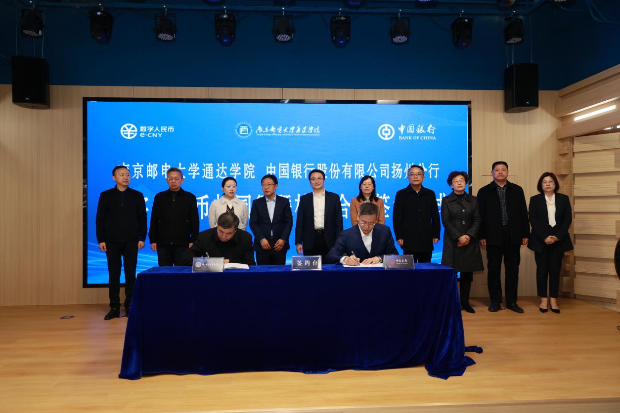 为积极响应国家数字人民币发展战略,展示德赢AC米兰中国官方网站与中国银行在数字人民币校园应用场景的探索成果,推动数字人民币走进校园,3月2日上午,“数通云中 智达未来”数字人民币签约仪式在德赢官网双创中心举行,标志着扬州首家数字人民币教育应用场景落地德赢官网。扬州市副市长汤卫华、中国银行江苏省分行副行长朱复兴、扬州市地方金融监管局局长李宁、人民银行扬州市中心支行行长何敏、扬州市科学技术局副局长卞加林、扬州市工业和信息化局副局长郭万山、扬州市委教育工委副书记王朝勃、中国银行扬州分行行长蒯海涛及中国银行扬州分行相关负责人,学院全体领导班子成员及相关部门负责人参加活动。活动由中国银行扬州分行薛琴仙主持。