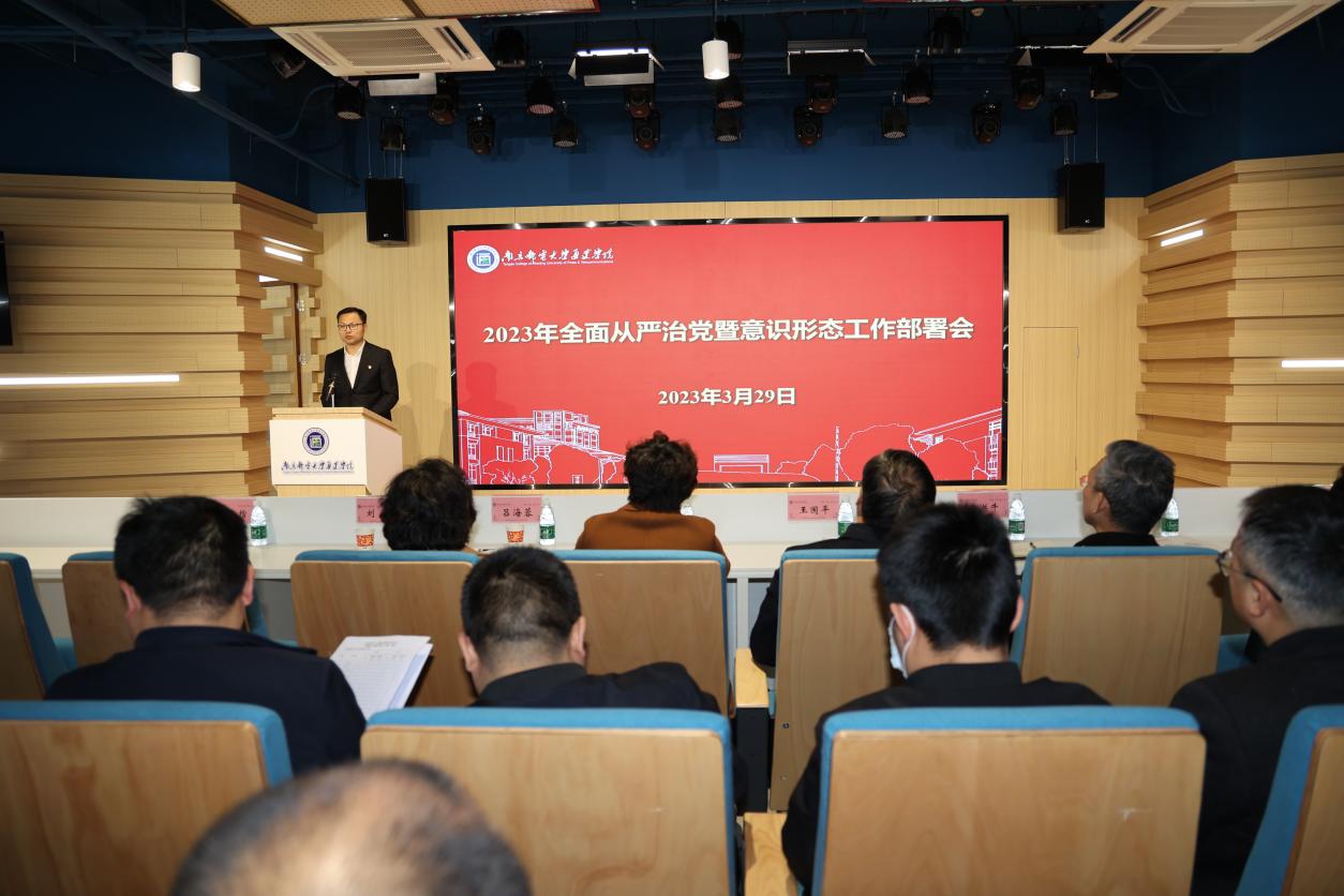 3月29日下午,学院在双创中心路演大厅召开2023年全面从严治党暨意识形态工作部署会。学院全体院领导、纪委委员、中层干部、重点岗位科职干部参加会议。会议由学院党委副书记兼副院长王楷主持。