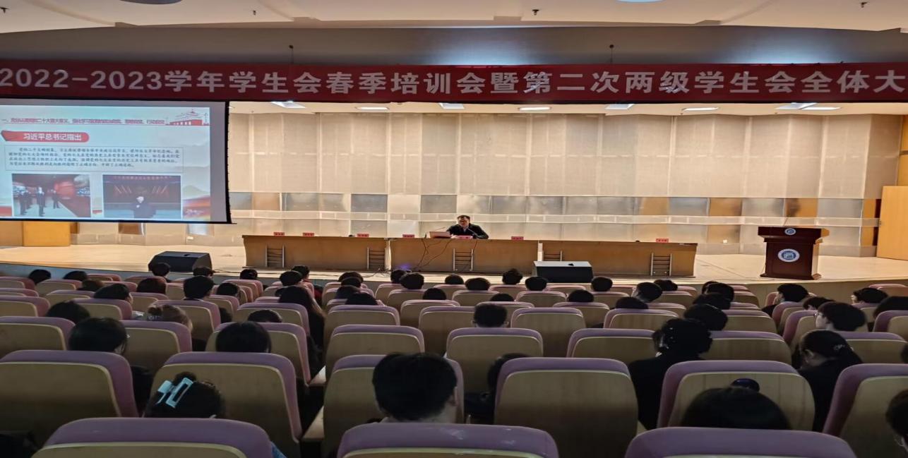 3月29日中午,德赢官网学生会在行政楼报告厅开展了“以党的二十大精神为统领,奋力谱写新时代青春华章”为主题的宣讲活动。学院党委副书记兼副院长王楷主讲,学院团委负责人以及两级学生会全体成员共100余人参加宣讲会。