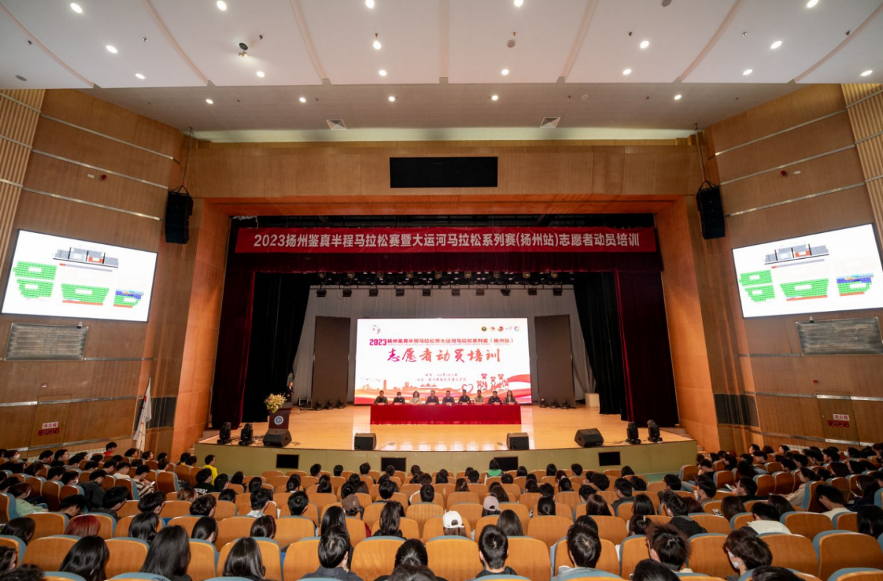 3月29日下午,2023扬州鉴真半程马拉松暨大运河马拉松系列赛(扬州站)第二场志愿者动员培训大会在德赢官网大礼堂顺利举行。扬州团市委副书记杨国庆,扬州市体育局四级调研员秦宏图,通达学院党委副书记兼副院长王楷,学院团委负责人参加动员大会。相关技能培训老师以及通达学院、扬州工业职业技术学院和江海学院的850余名志愿者参加动员培训。本次大会由团市委赵鹏主持。