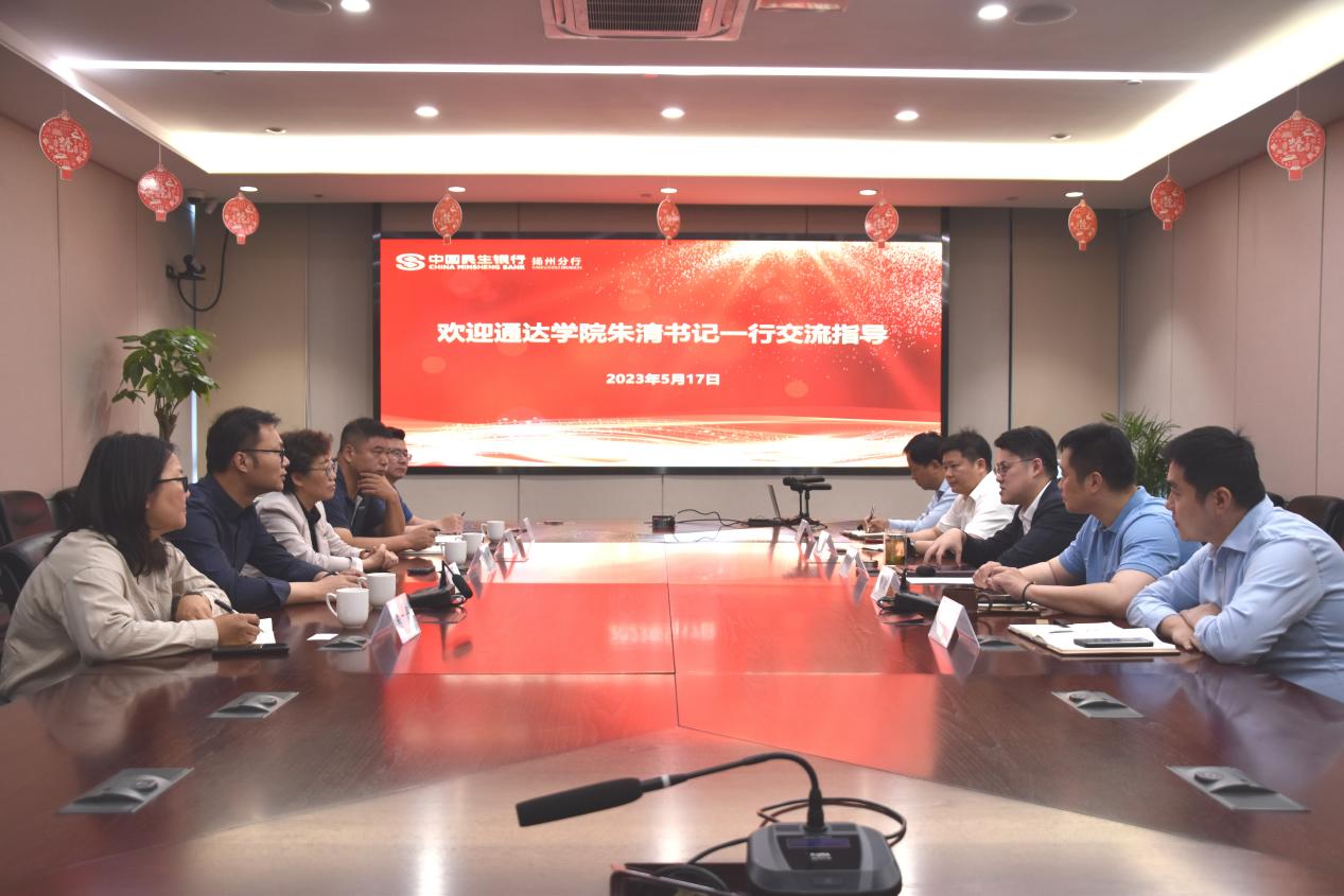 5月17日,德赢官网党委书记朱清率队赴民生银行扬州分行走访调研。民生银行扬州分行党委书记、行长杜杨坤,党委副书记倪敬等,德赢官网副院长倪可,党委副书记、副院长王楷,招生就业处、商学院等相关部门负责人参与调研。