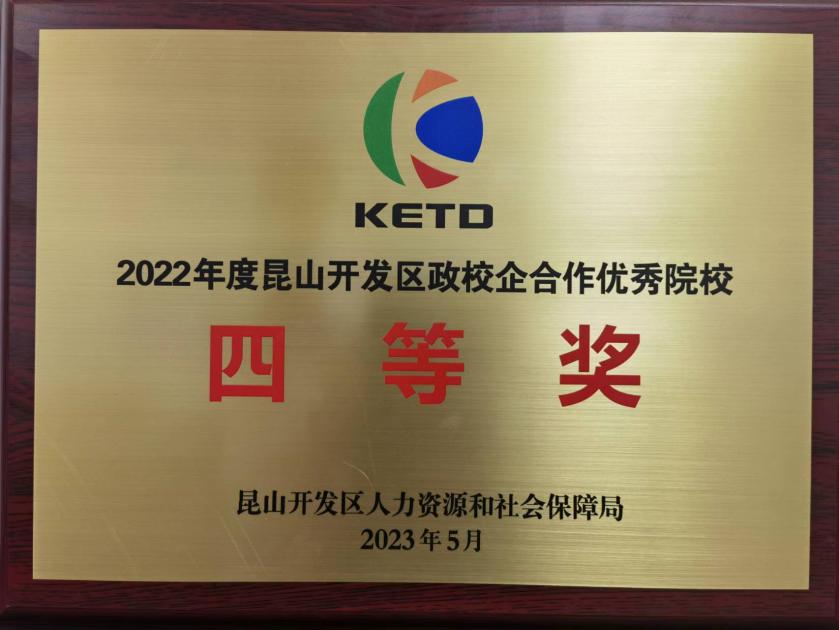 5月24日上午,德赢官网参加“昆山开发区2023年开发区政校企合作年会暨人力资源洽谈会”。首次获评2022年度昆山开发区“政校企合作优秀院校”。