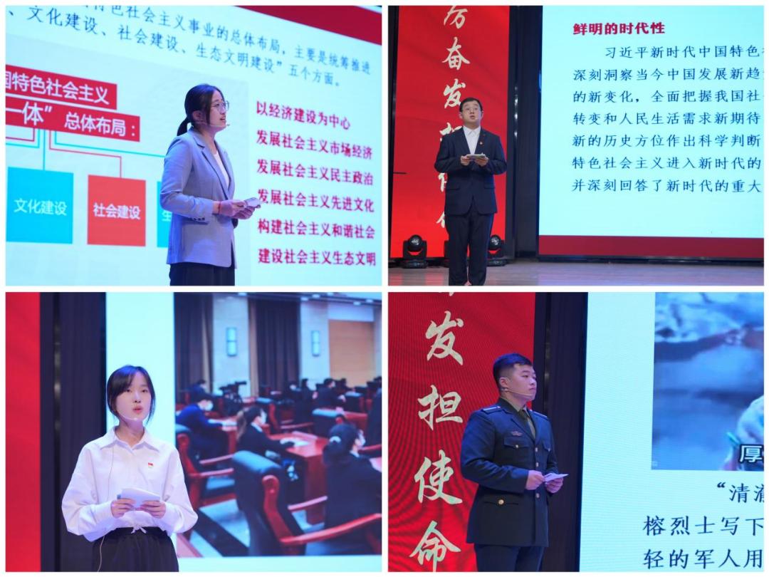 由最美辅导员代表、青年学习社党员代表、通达戎光先锋队党员代表组成的师生宣讲团,从“习近平新时代中国特色社会主义思想汇聚磅礴力量”“习近平新时代中国特色社会主义思想领航奋斗青春”两个方面展开,引导通达青年学子在学习中感悟思想伟力,凝聚奋进力量。