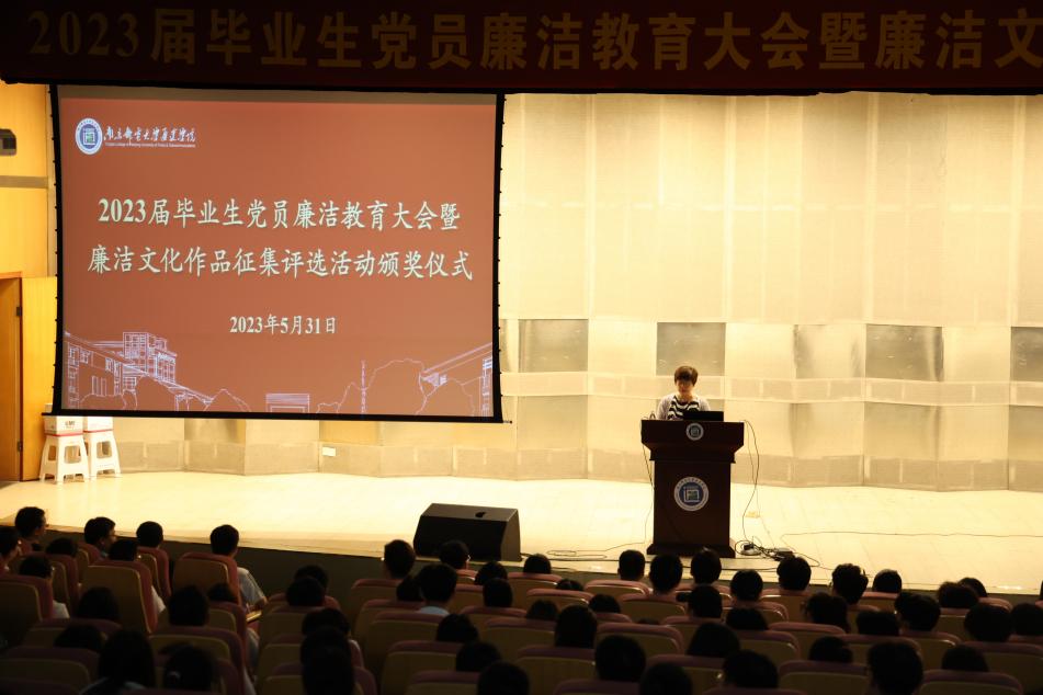 为进一步引导毕业生坚定理想信念,增强廉洁自律意识,5月31日晚,德赢官网在行政楼报告厅召开2023届毕业生党员廉洁教育大会暨廉洁文化作品征集评选活动颁奖仪式。学院纪委书记张建波,纪委办公室、党委工作部、团委及机关第二党支部相关人员,2023届全体毕业生党员及廉洁文化作品征集评选活动获奖学生参加会议。会议由纪委办公室主任主持。
