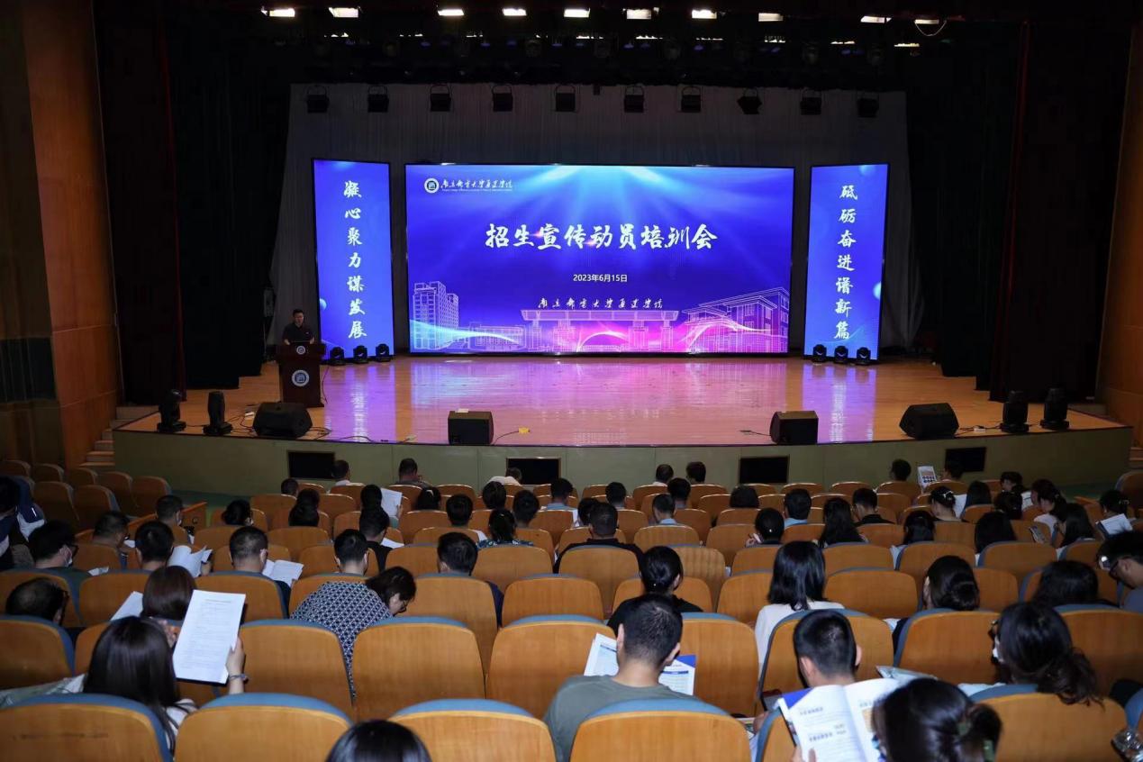 6月15日上午,“凝心聚力谋发展,砥砺奋进谱新篇”——2023年招生宣传动员培训会在德赢官网大学生活动中心礼堂举行。学院全体院领导、江苏省内13个招生宣传组共130多名教职工参会。大会由招生就业处处长解厚荣主持。