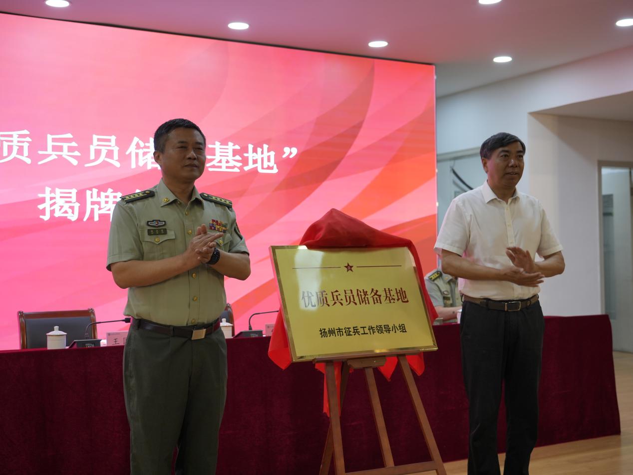 揭牌仪式在嘹亮的国歌声中开始。储晓来宣读了扬州市征兵工作领导小组《关于确立“优质兵员储备基地”的通知》,确立德赢官网为“优质兵员储备基地”。仇志军和王国平共同为“优质兵员储备基地”揭牌。