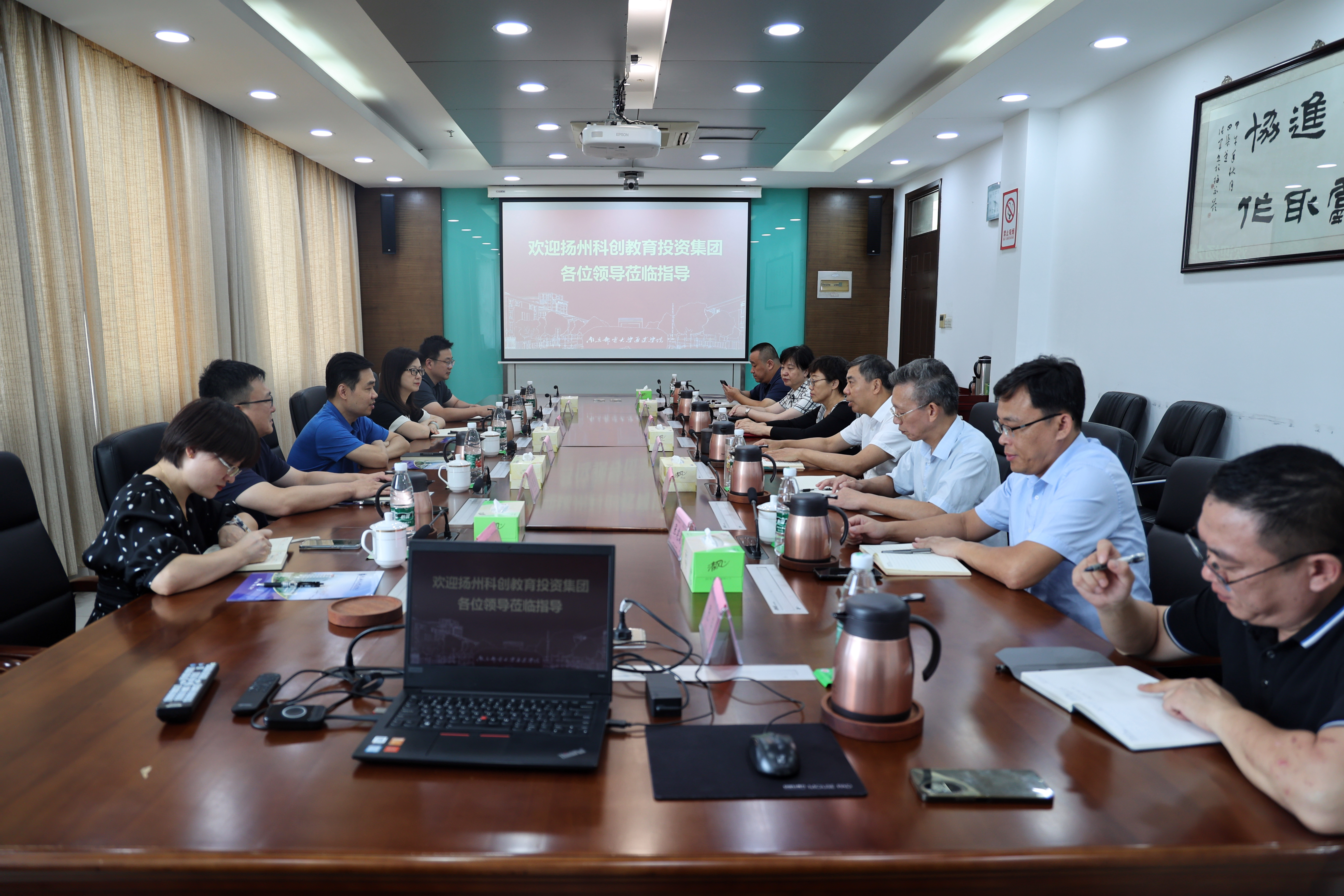 9月5日下午,扬州科创教育投资集团党委书记、董事长吴俊,总经理闫冬梅、副总经理朱晓东、副总经理段如旭一行来学院调研交流。学院院长王国平、党委书记朱清、常务副院长赵洪牛、副院长吕海蓉、纪委书记张建波参加交流活动。