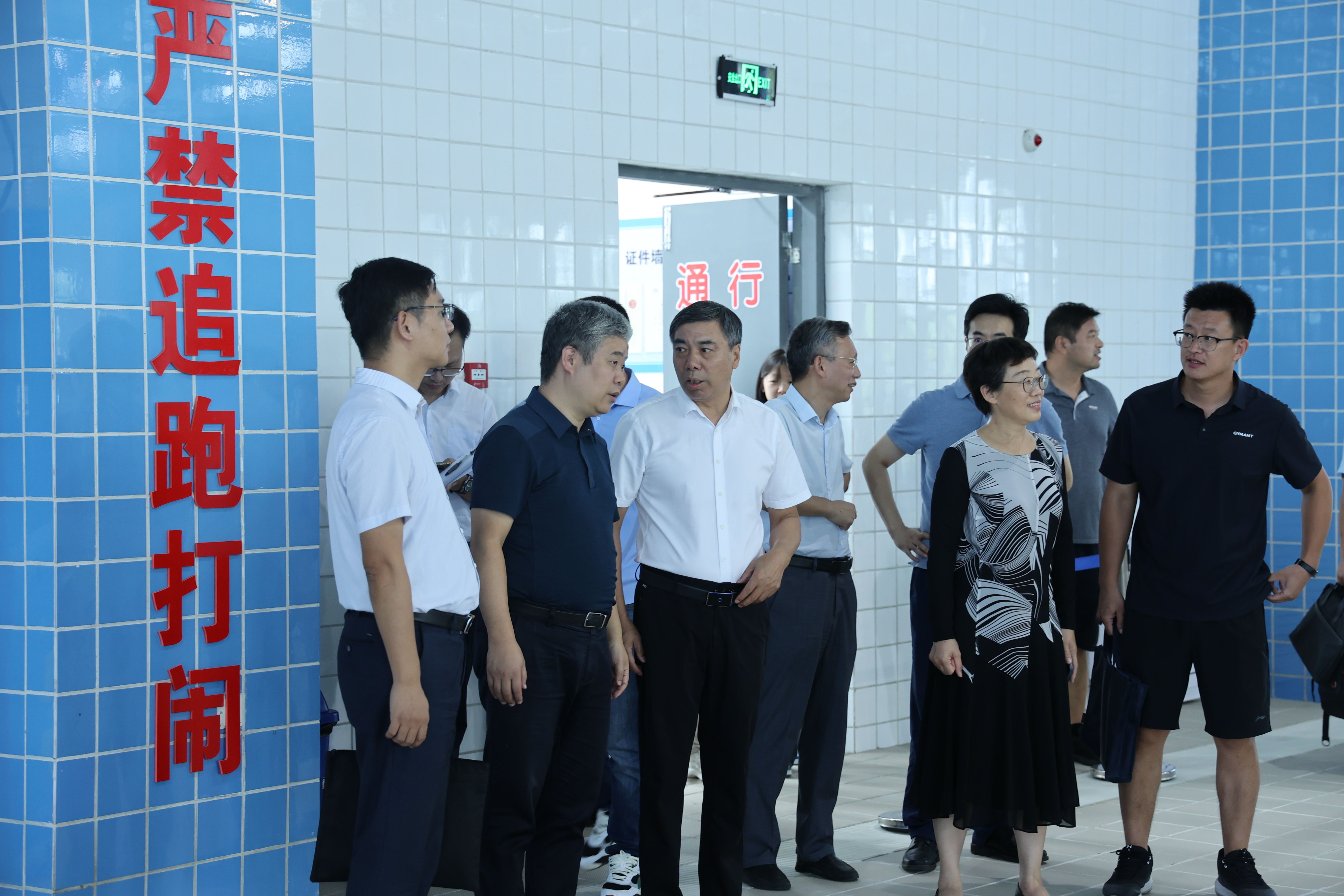 郭宇锋书记首先参观了学院游泳馆、体育馆、双创中心、考研教室、学术交流中心、乒乓球馆、图书馆等场所,与现场师生亲切交流并提出指导意见。
