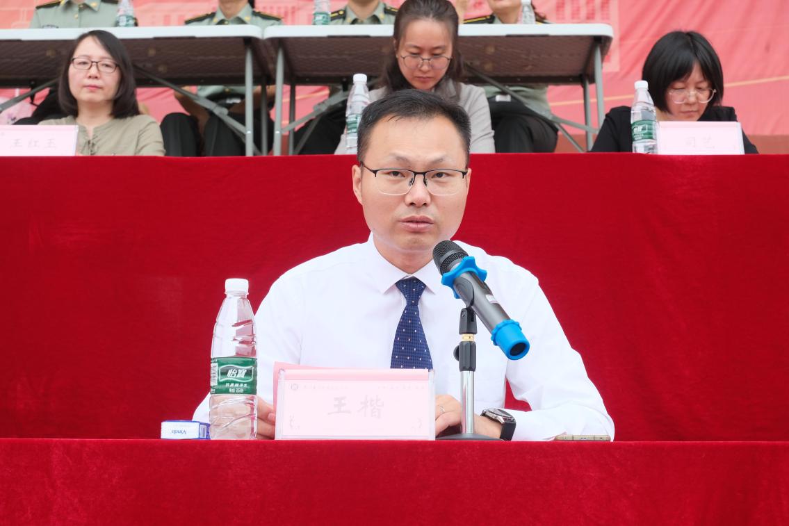 党委副书记兼副院长王楷作军训总结讲话。王书记向参与军训工作的教官和辅导员老师表示诚挚的感谢,向圆满完成军训任务的各位同学表示衷心的祝贺。他对即将开始丰富多彩的大学生活的2023级新生们提出三点希望:一是要坚定理想信念,筑牢精神之基;二是要弘扬军训精神,自觉砥砺成长;二是要珍惜大学生活,励志笃行致远。王书记鼓励同学们在攀登人生高峰的道路上,不断战胜困难、披荆斩棘、勇敢前进,成为志存高远、脚踏实地,勇于创新创造、矢志艰苦奋斗的新时代青年。