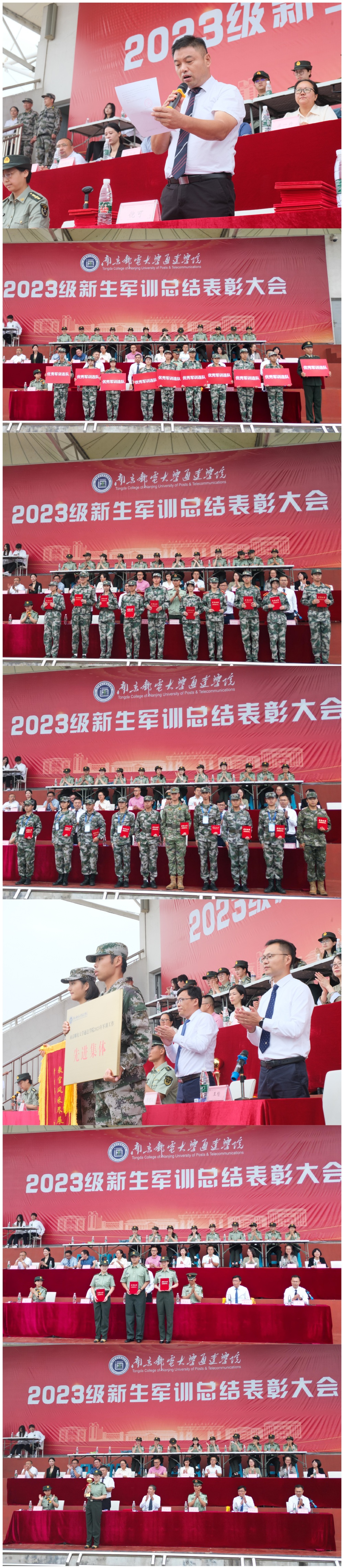 军训成果展示结束后,副院长倪可宣读了学院对17个优秀军训连队、108名优秀军训标兵、22名优秀军训教官、3名优秀军训指导员、1个军训工作先进集体进行表彰的决定。学院领导与部队代表先后为获奖集体与个人颁奖。王国平院长代表学院向承接德赢官网2023级新生军训任务的武警支队赠送锦旗。