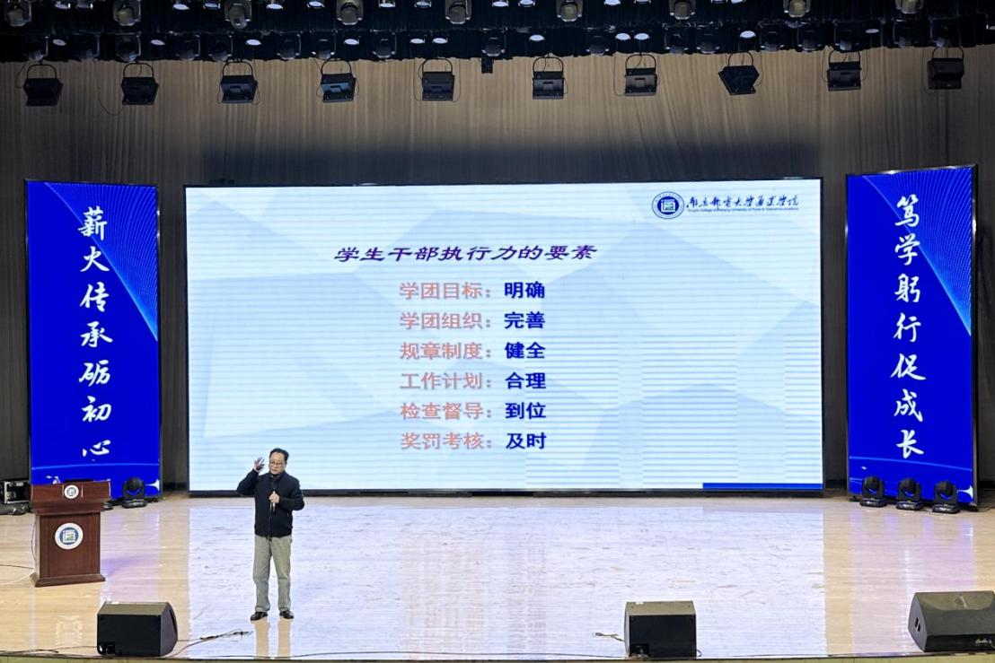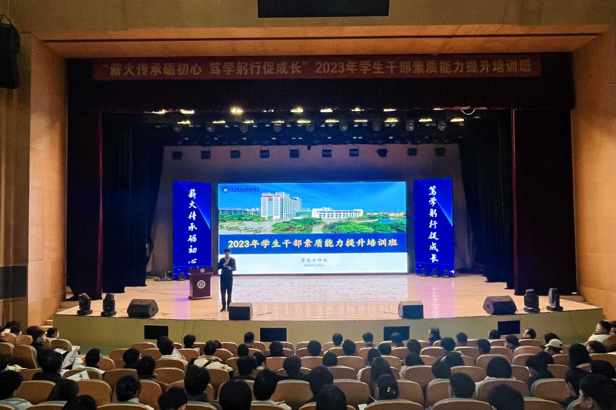 11月29日下午,德赢官网在大学生活动中心礼堂组织开展了“薪火传承砺初心 笃学躬行砺成长”2023年学生干部素质能力提升培训。学院党委副书记兼副院长王楷、学工处负责人及2021-2023级全体班长参加培训活动。