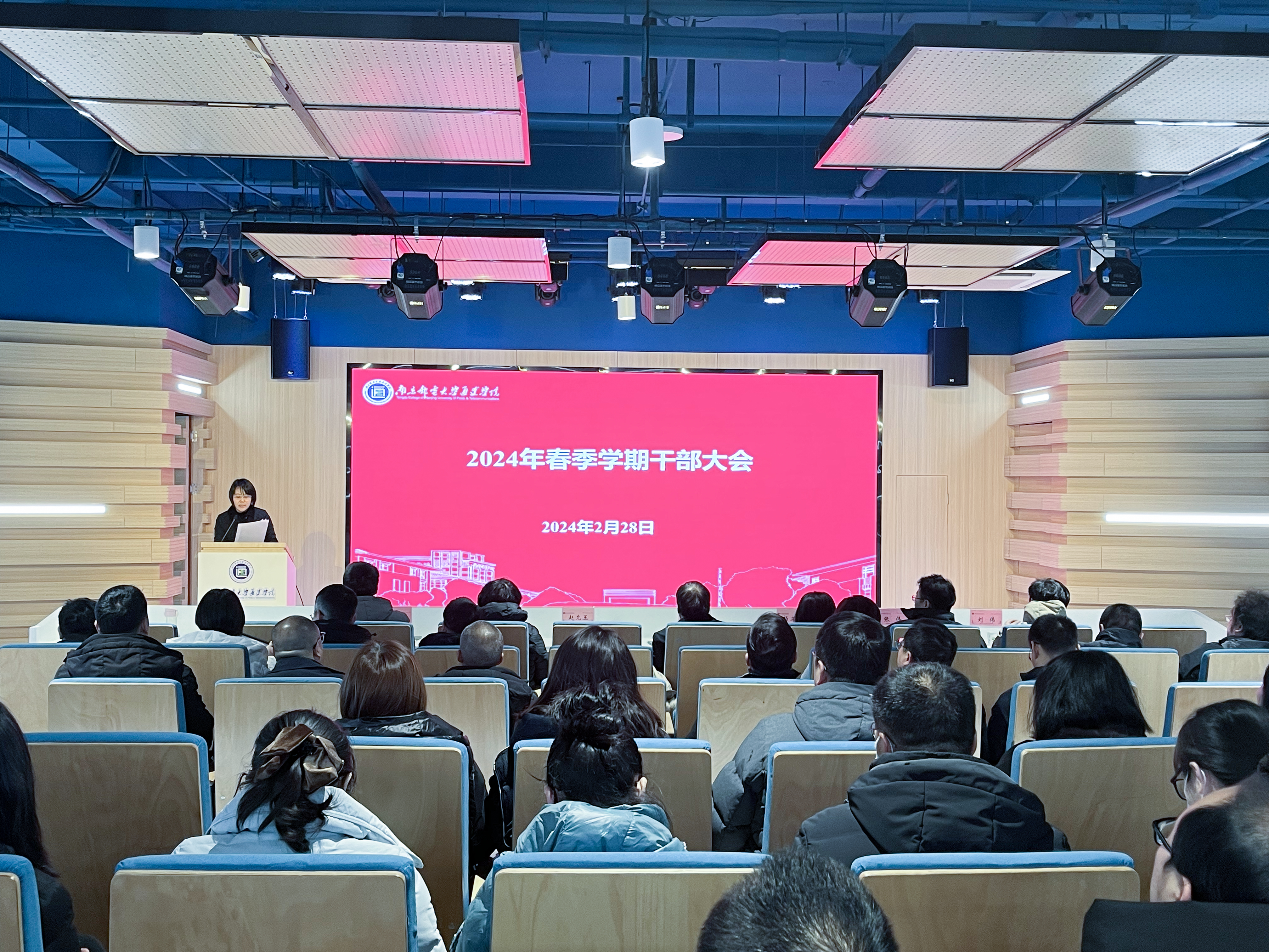 2月28日下午,德赢官网在双创一楼路演大厅召开2024年春季学期干部大会。全体院领导出席会议。全体中层干部参加会议。会议由党委书记赵允玉主持。