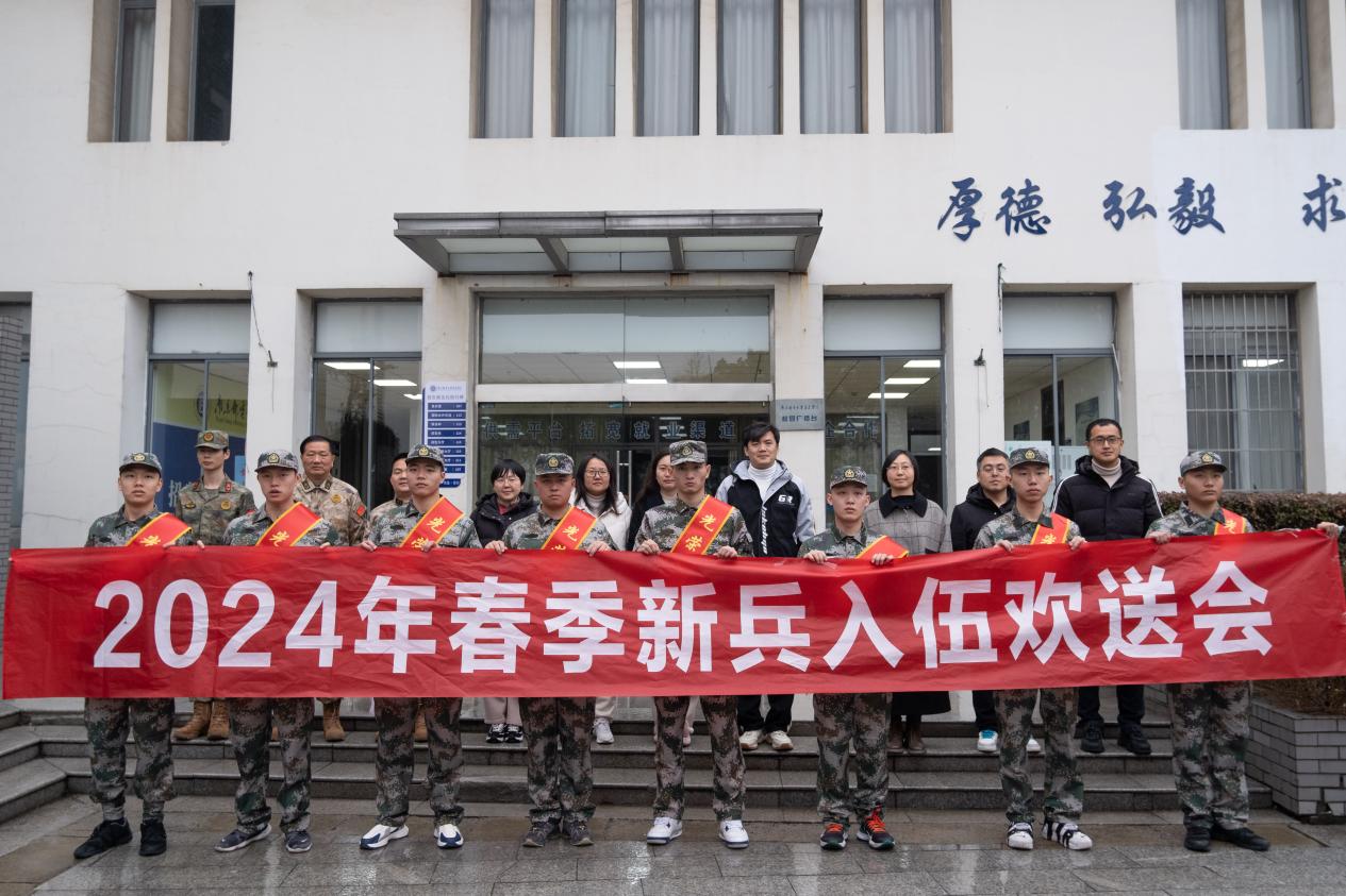 欢送会上,对德赢官网2024年春季征兵工作开展情况以及8名入伍新兵的在校表现进行了一一介绍。
