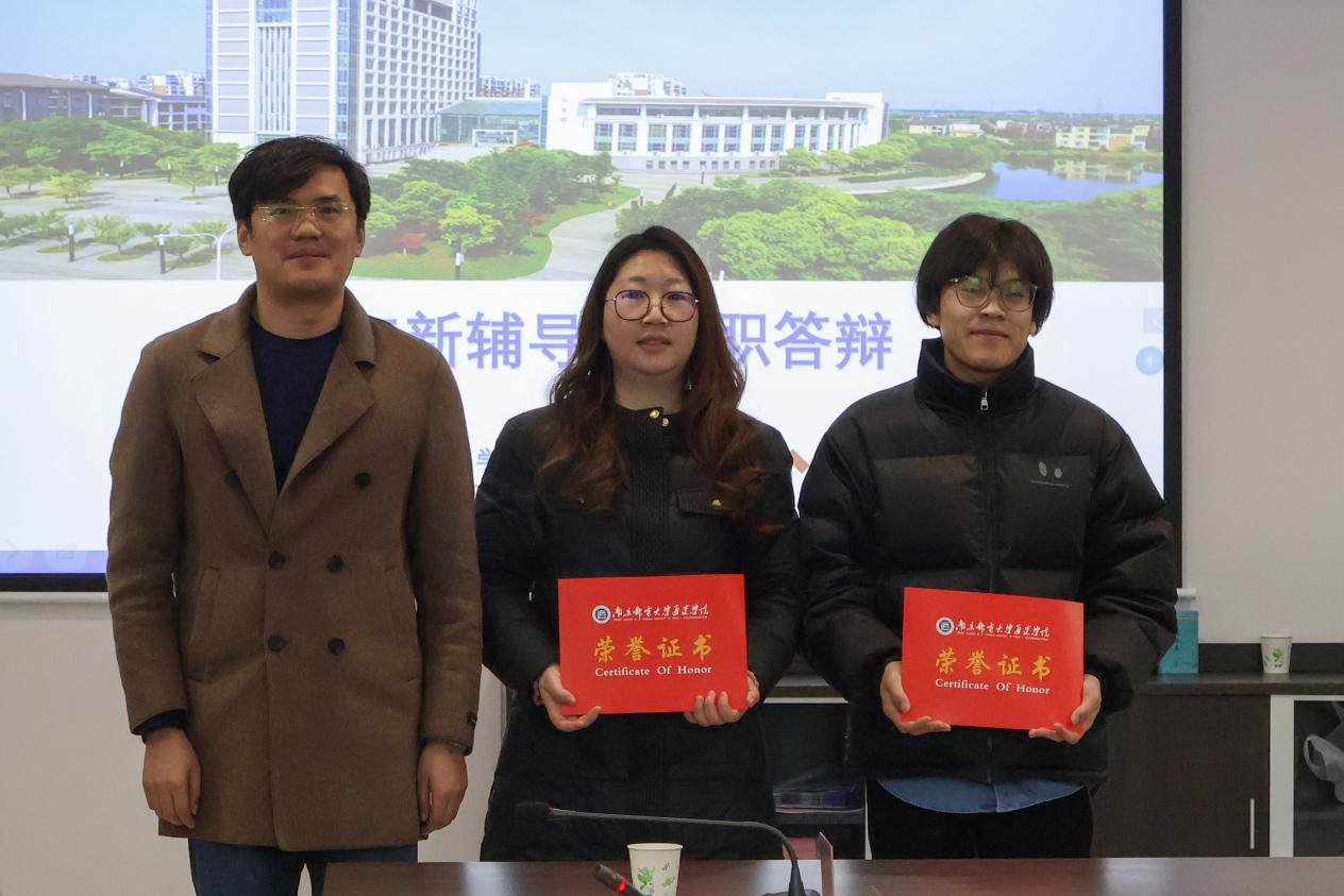 本次答辩共分为工作展示和现场问答两个部分。工作展示环节,辅导员们重点介绍了入职以来的工作实施与完成情况、工作中遇到困难与挑战以及下一阶段的工作设想。现场问答环节,辅导员对所带学生基本情况、辅导员日常工作准则及实际工作案例进行了解答与分析。活动现场气氛热烈,评委在与辅导员的互动交流之中,帮助辅导员们强化工作认识、明晰工作流程,拓展工作思路。经评选,计算机工程学院辅导员李明阳、商学院辅导员吉青荣获2023年“优秀新入职辅导员”。