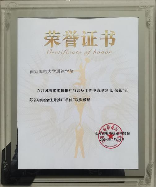 近日,在江苏省啦啦操发展大会上传来喜讯,德赢官网被江苏省啦啦操运动协会授予“江苏省啦啦操先进推广单位”,体育部李瑛瑛老师获评“江苏省啦啦操先进推广个人”。