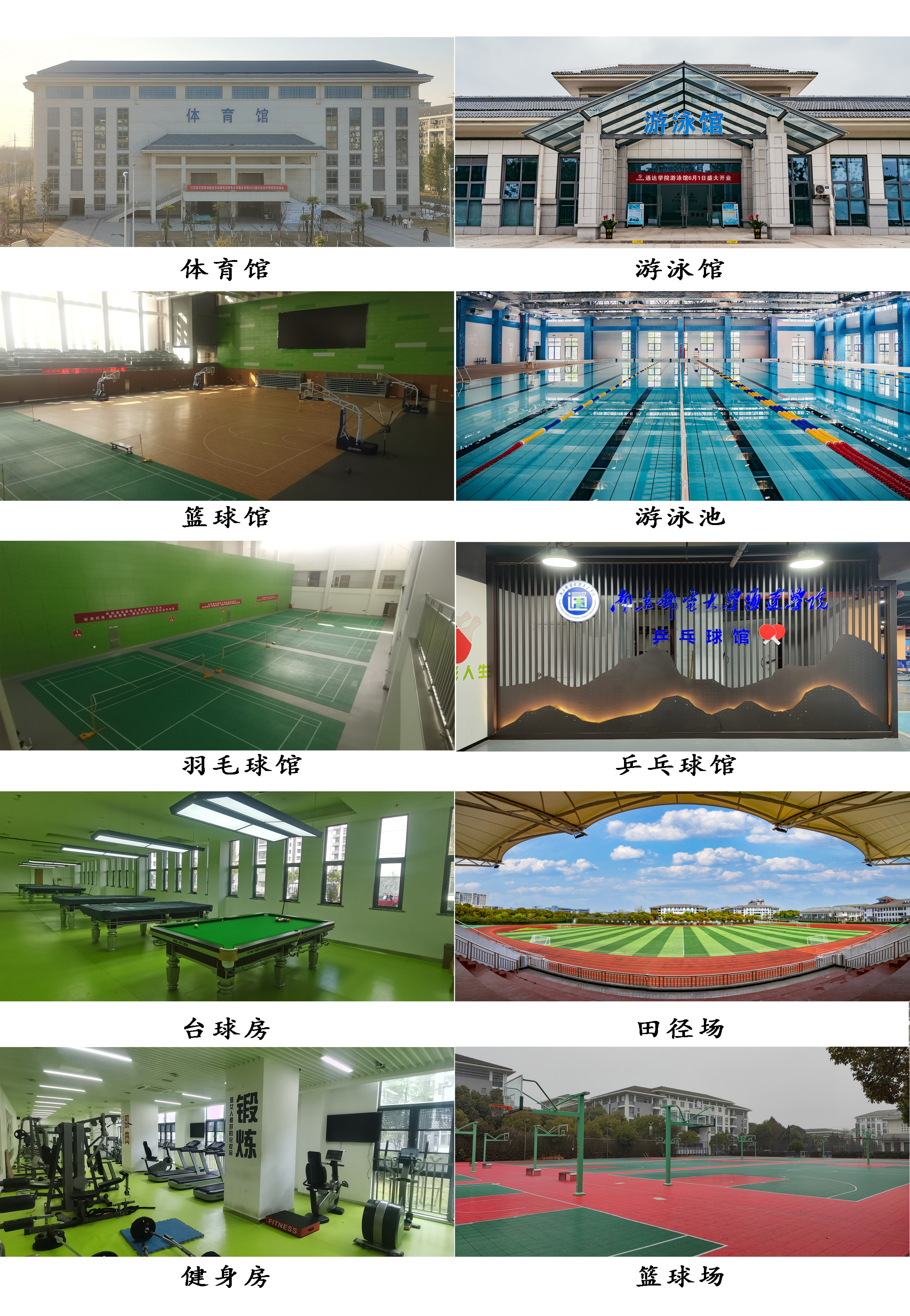 体育设施功能全 学院运动场地有体育馆、乒乓球馆、游泳馆、田径场、篮球场、网球场以及功能区有健身房、台球房、瑜伽房、舞蹈房等,总有一片适合于学生的运动“舞台”,展现出他们的青春风采。