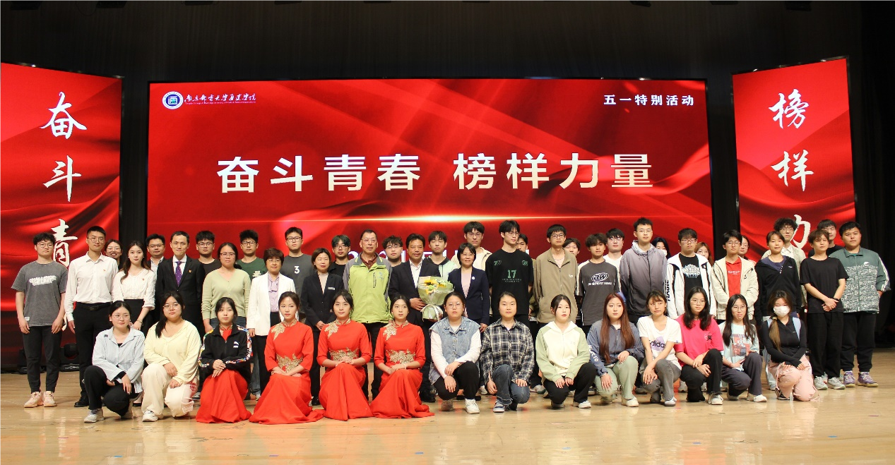 2024年4月24日下午,在大学生活动中心隆重举行“奋斗青春 榜样力量”五一特别活动。党的二十大代表、全国道德模范、全国劳动模范、“中国好人”周维忠,扬州报业传媒集团党委副书记、扬州日报社副社长、扬州日报总编辑袁文生,扬州日报副总编辑李峰、扬州报业传媒集团教育中心总监冯刚受邀到场,学院院长王国平、党委书记赵允玉、副院长张伟、纪委书记宋健康出席活动,全体教职工与学生代表600余人参加活动。