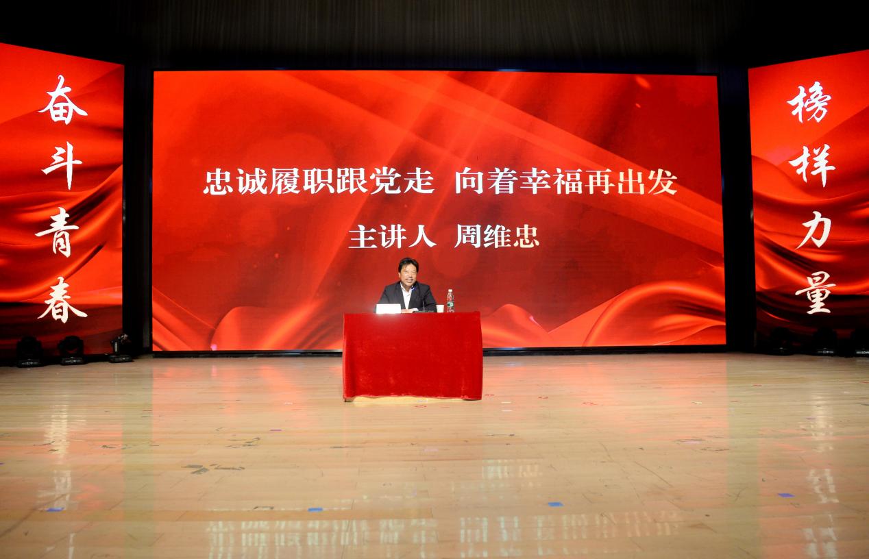周书记为在场师生带来了一堂别开生面的思政课。他以“忠诚履职跟党走,向着幸福再出发”为题,从“三个感恩”、“四次到京”“乡村振兴”三个方面用最朴素的语言和最真挚的情感,全程脱稿向同学们讲述了他的温暖故事和人生体悟,让同学们看到了一个善良、热情、真诚的党的二十大代表,真切感受到一名普通农村电工成长为全国劳动模范、全国道德模范的奋斗历程。他鼓励同学们要担当历史责任,做到“风声雨声读书声声声入耳,家事国事天下事事事关心”,要坚定不移听党话、跟党走,立志做有理想敢担当能吃苦的新时代好青年。他勉励在场大学生,“当生活变成电影,每个人都可以成为主角,只要想做事、多做事、做好事、做成事,都能活成自己最美的模样”。