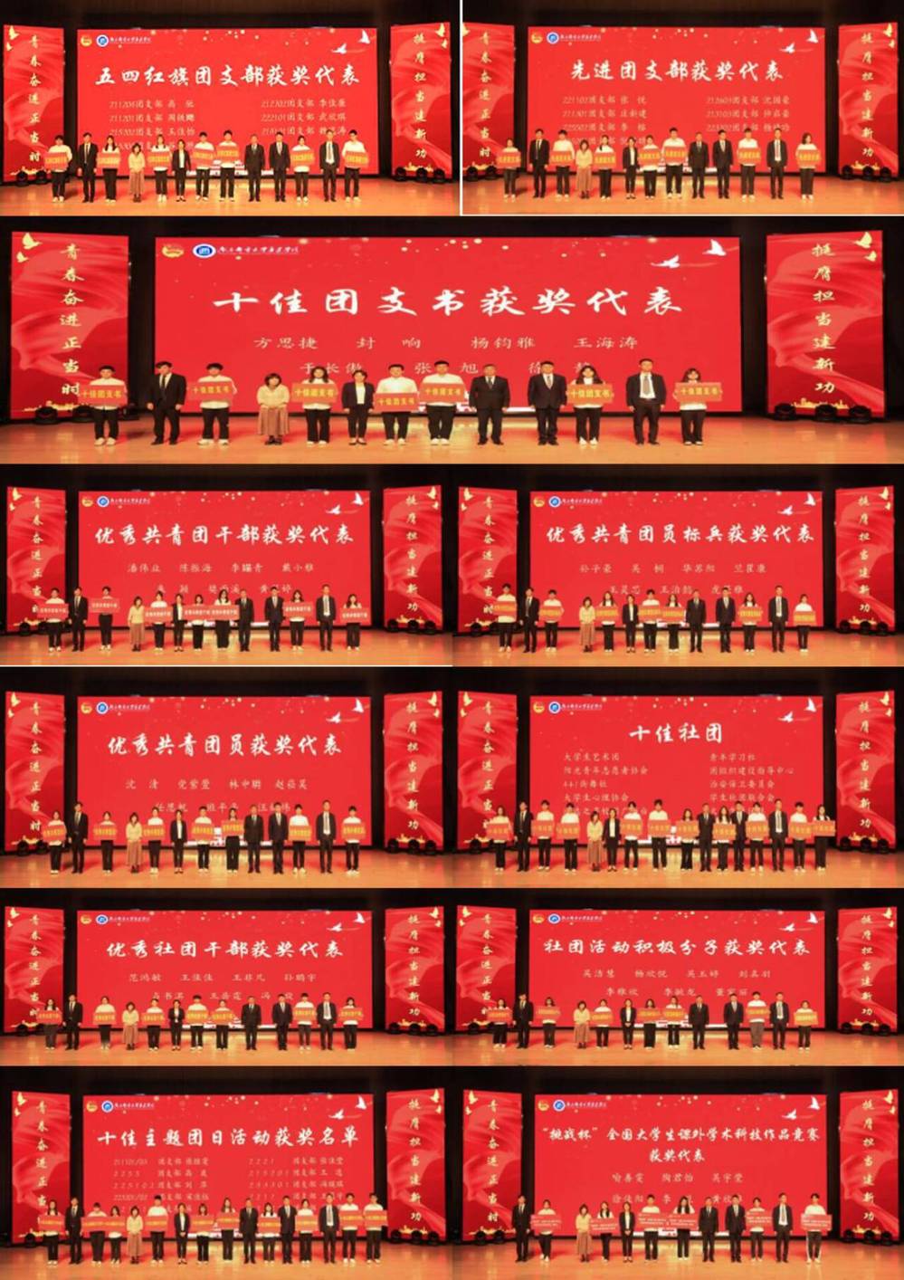 在五四表彰环节中,党委副书记兼副院长刘伟宣读了《关于表彰德赢AC米兰中国官方网站2023-2024学年先进团组织和个人的决定》和《关于表彰德赢AC米兰中国官方网站2023-2024学年十佳主题团日活动的决定》。商学院分团委和电子工程学院分团委荣获“五四红旗团委”荣誉称号,计算机工程学院分团委书记靳薇弘、电气工程学院分团委书记刘阳荣获“优秀共青团工作者”荣誉称号。在“挑战杯”全国大学生课外学术科技作品竞赛和第十届科技文化节系列竞赛中,获得2个省级二等奖以及4个省级三等奖。11个团支部荣获“五四红旗团支部”称号、16个团支部荣获“先进团支部”称号;共评选出优秀共青团干部44名、优秀共青团员标兵22名、优秀共青团员272名、优秀社团干部76名、社团活动积极分子298名、十佳社团10个、十佳团支书10名、十佳主题团日活动10个。