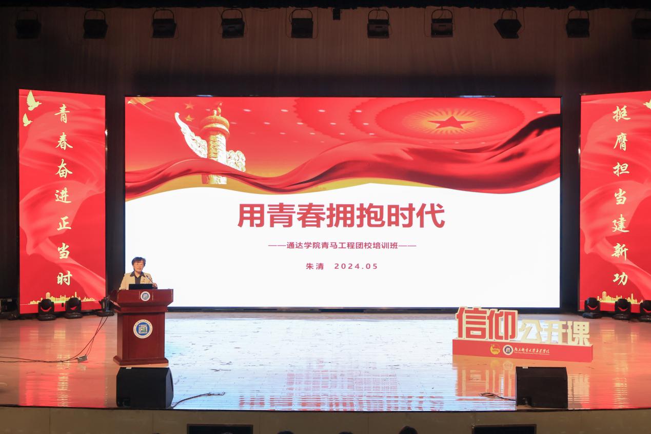 在青马工程团校培训开班典礼上,朱清教授以《用青春拥抱时代》为题讲授了第一课,报告分为“明确当代青年的历史使命”、“重温百年复兴的艰辛历程”、“从党的精神谱系中汲取青春力量”三部分。她鼓励在座的同学们,在新时代要珍惜宝贵的青春时光,心中有梦、眼里有光,用信念、奋斗、正气,奋力书写更多的“青春故事”。