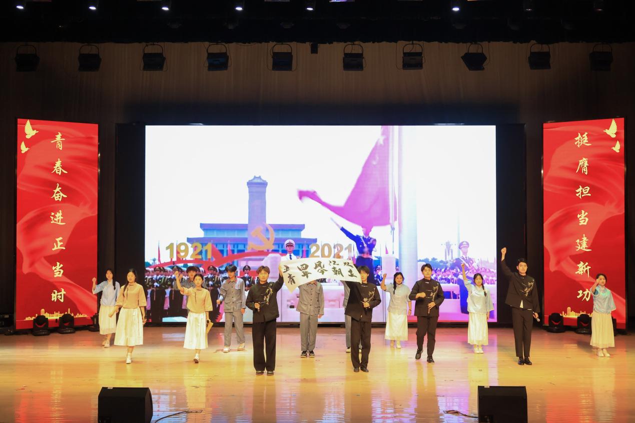 在文艺汇演环节,合唱《致吾辈》用歌声传递正能量,“吾辈当自强,吾辈莫敢忘”,歌曲《无名的人》将普通人奋斗的心酸苦辣演绎的淋漓尽致,优秀共青团干部代表陈振海和“挑战杯”获奖代表徐佳阳依次上台发言,向全体师生彰显榜样力量,绽放青春风采。
