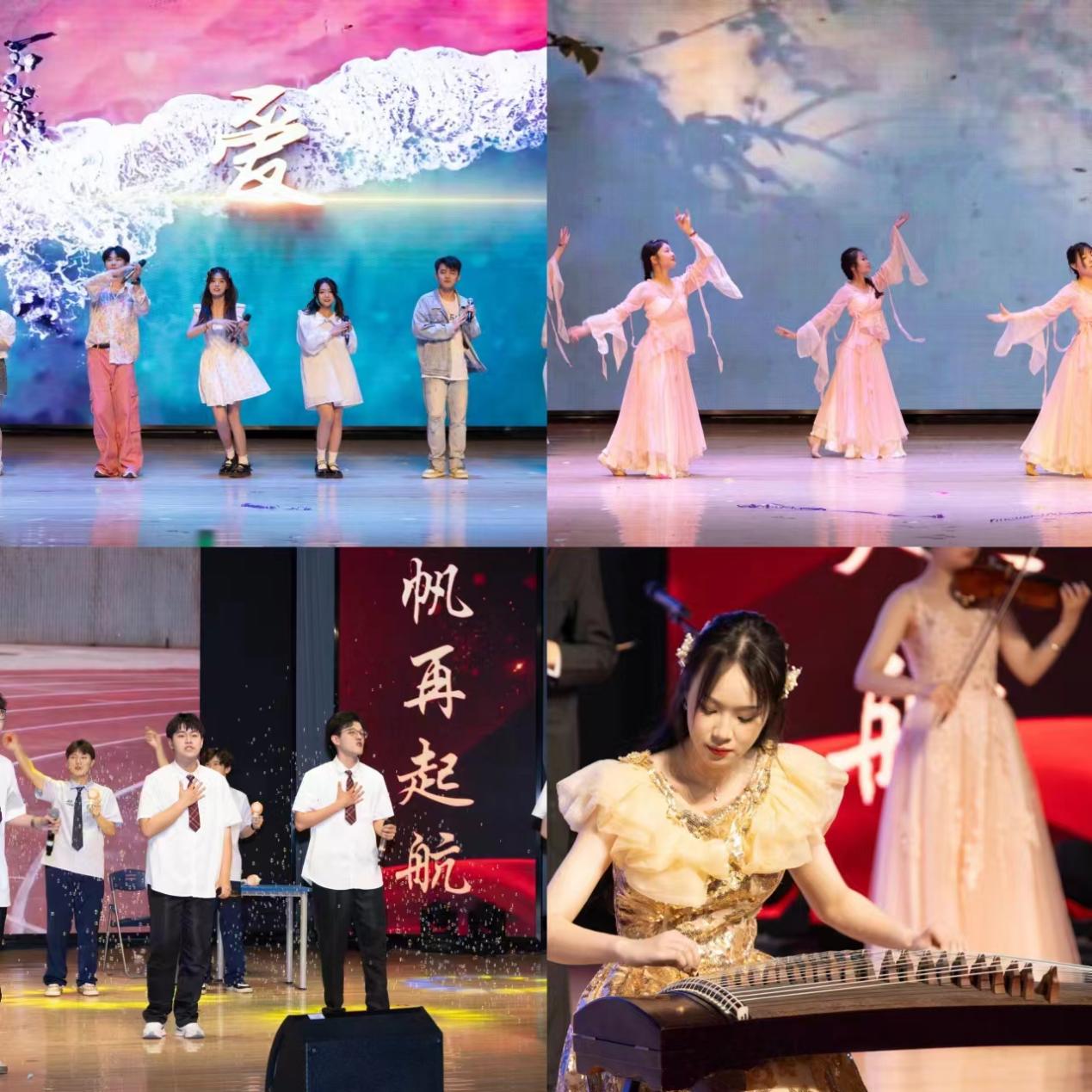 下篇“扬帆再起航”在悠扬的器乐《想见你》的旋律中拉开序章,预示着毕业生们对母校的深情告别和对未来的美好憧憬。随后,歌曲《为青春举杯》激昂唱响,唤醒了在场每一位毕业生的青春记忆。舞蹈《在盛夏告别》表达了对夏日的留恋和对即将离开校园的不舍。毕业生们代表深情演唱《最美的太阳》与《爱》,他们用深情的歌声表达了对母校的感激之情,同时展望美好未来。最后,2024届毕业班辅导员走上舞台演唱歌曲《启程》,用深情的歌词鼓励毕业生们勇敢地迈向新的人生阶段。