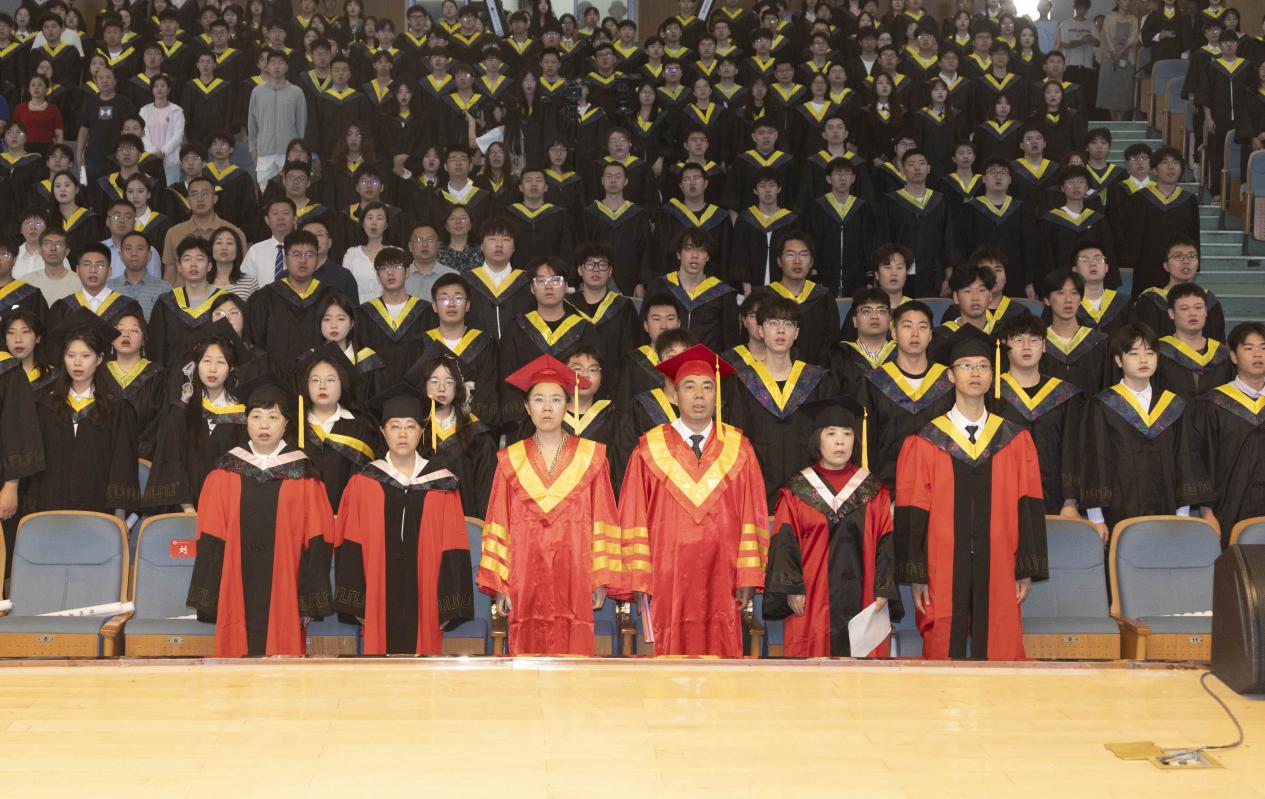 在庄严的国歌声中,毕业典礼正式拉开帷幕。