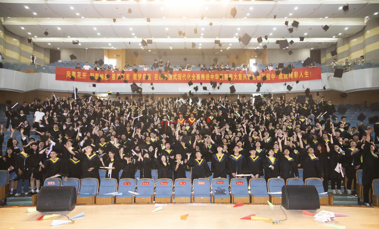承载梦想,踏上新征程。全体毕业生庄严宣誓:“感念母校,勿忘师恩;追求理想,勇攀高峰;为实现中华民族伟大复兴的中国梦努力奋斗!”