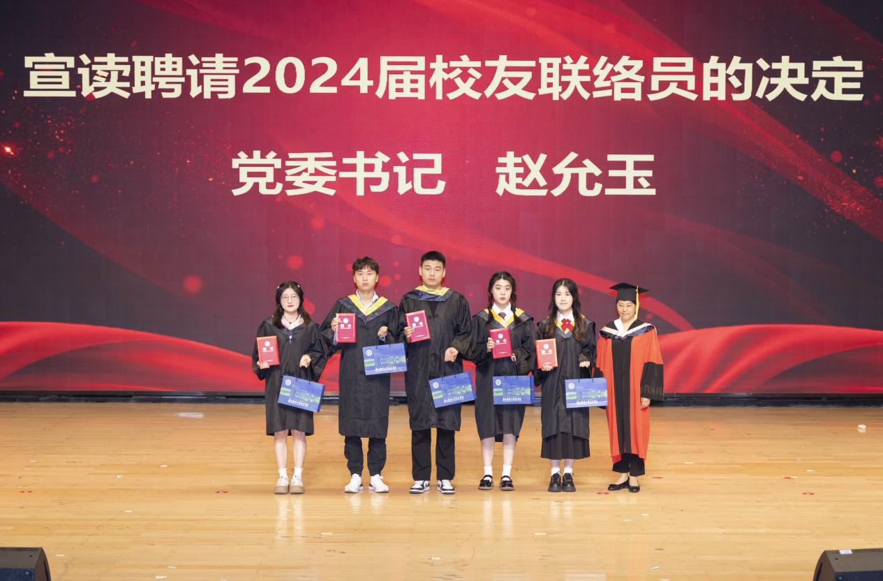 学院党委书记赵允玉宣读《关于聘请丁馨雨等99位同学为2024届校友联络员的决定》并为校友联络员代表颁发聘书。