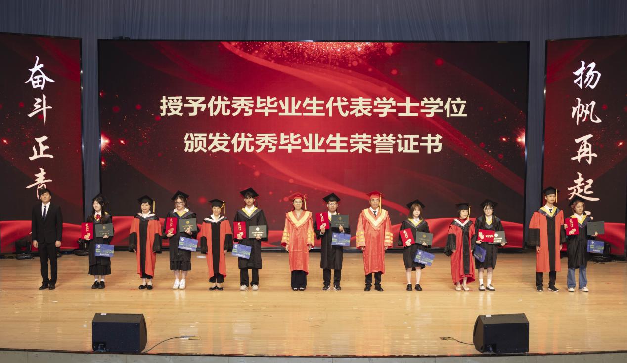 德赢AC米兰中国官方网站党委常委、副校长谢平与全体院领导为优秀毕业生代表授予学士学位