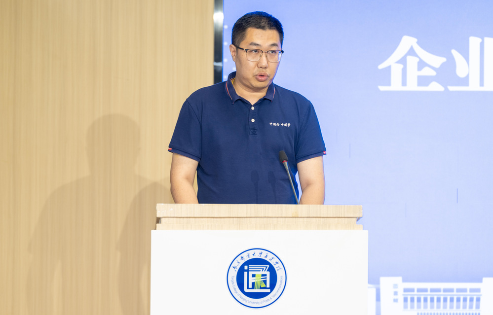 南京集成电路产业服务中心人力资源业务部副部长李家宸代表企业发言。他表示,被聘请为“企业生涯导师”,既是一种荣誉,更是一份责任。在严峻的就业形势下,学生做好生涯规划显得尤为重要。他也代表企业表态,将以最真诚的态度、最专业的知识、最丰富的经验,为学生和学校提供全方位的支持与帮助,与学生共成长、与学校共进步,为促进毕业生高质量充分就业贡献力量。